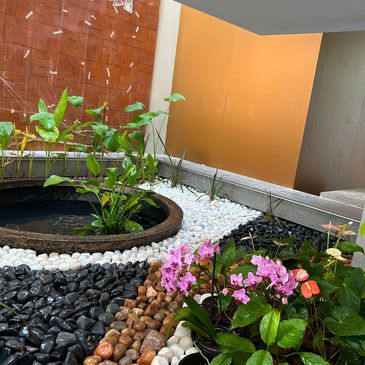 Custom landscape design, custom Patio installation, custom water feature like water fountain, artificial water falls and custom outdoor kitchen garden design